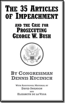 “This collection of impeachable offenses should be viewed as a sampling of the crimes and abuses of President George W. Bush and his subordinates. Bush has had many accomplices — first and foremost Vice President Cheney. But our Founders created a single executive precisely so that we could hold that one person accountable for the actions of the executive branch. It is high time we did so, and millions of Americans will be urging their representatives to support the effort being led by Congressman Kucinich.